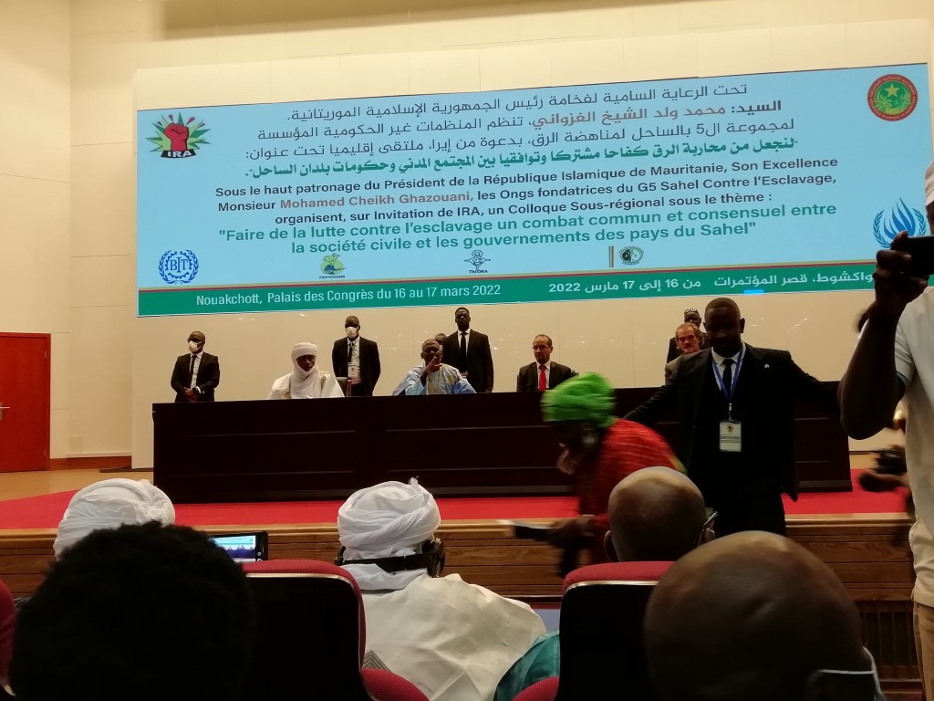 Les 16 et 17 mars 2022 s’est tenu à Nouakchott un colloque organisé par le réseau G5 Sahel contre l’esclavage sur le thème « Faire de la lutte contre l’esclavage un combat commun et consensuel entre la société civile et les gouvernements des pays du Sahel », sous le haut patronage du président de la République islamique de Mauritanie, Son Excellence Mohamed Cheikh Ghazouani. Le Palais des Congrès de Nouakchott était mis à disposition d’IRA et des autres ONG organisatrices. IRA-France était représentée par Laure Humbel, membre du bureau.