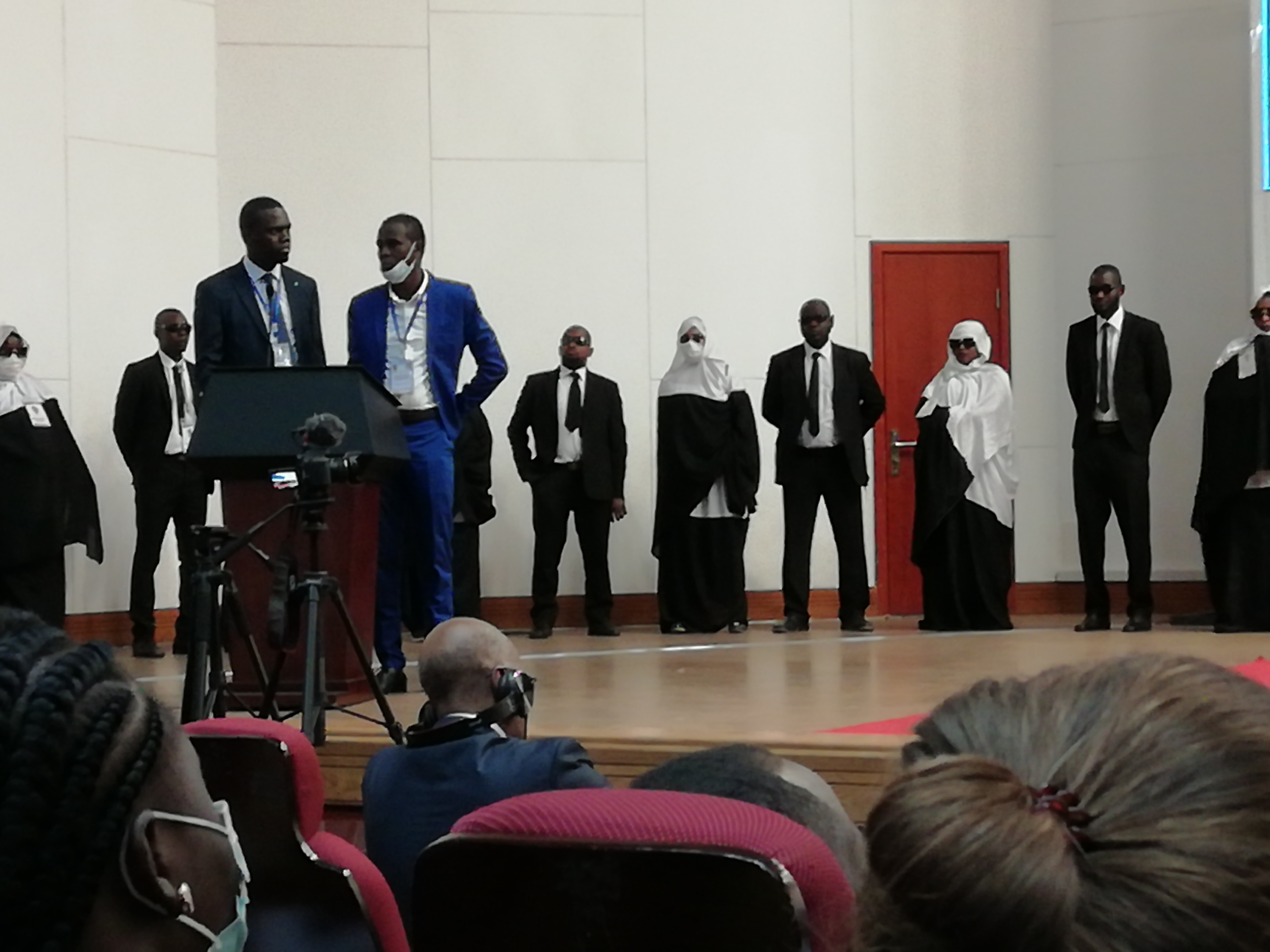 Biram Dah Abeid a accueilli les participants avec un discours d’ouverture prononcé d’abord en hassanya (l’arabe dialectal parlé en Mauritanie) puis en français. Le président d’IRA souhaitait en effet se faire comprendre de l’ensemble de l’assistance qui l’a généreusement applaudi et ovationné. Les militants d’IRA étaient quant à eux présents en grand nombre dans le service d’organisation et sur scène, dans leur costume noir et blanc, une femme et un homme en alternance.